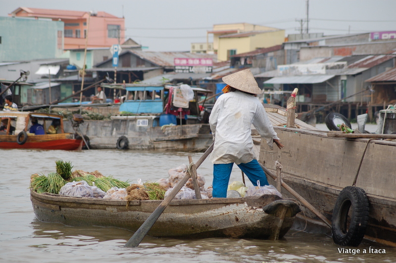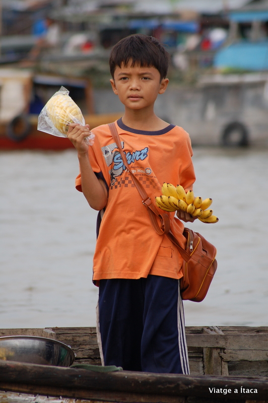 I perquè ens hem aixecat tan d’hora? Doncs perquè hem d’anar a veure el mercat flotant de Can Tho, i per això ens han pujat al bus per anar a agafar una barca i poder navegar pel Mekong i veure el mercat flotant.