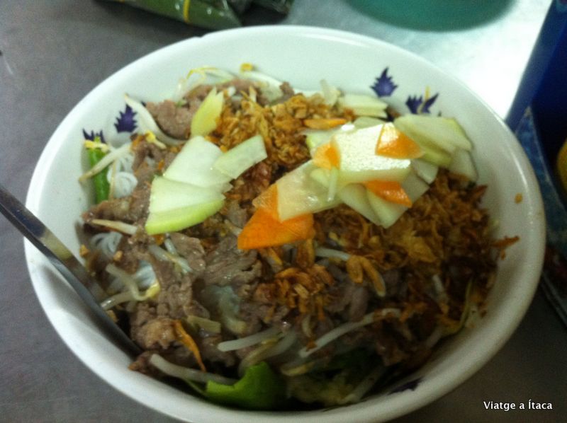 Ja s’ha fet fosc, i fa una miqueta més de fred. Sortim a sopar, i ho fem a un lloc recomanat pel My. Es diu Bun Bò Nam Bô, i és que amb aquest nom com no s’hi ha de menjar be ☺