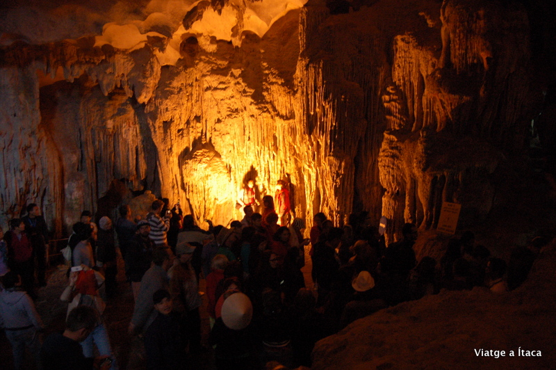 La visita a les coves no podem ser molt objectius, si que us podria dir que són maques i impressionants, tot plenes d’estalactites i estalagmites, però quin és el problema?? Doncs els milions de persones que t’hi trobes i que de fet el recorregut vas seguint una cua immensa que no et deixa acabar de gaudir-ho completament. Ja no dic intentar fer una foto que no surti ningú. Per sort, hem pogut avançar a una gentada indeterminada, i aleshores trobar un racó entre grups, que cada guia atura per fer la explicació, i aleshores hem pogut fer el final del recorregut amb una mica més de tranquil·litat.