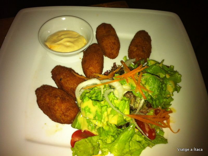 Que ens ha fet entrar tant ràpid? Doncs truita de patates, braves, xampinyons saltejats, pa amb tomàquet i…. CROQUETES!!!