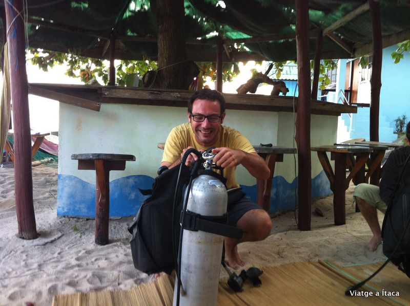 Quan vam començar a pensar en aquest llarg viatge una de les opcions que se’ns van obrir va ser la possibilitat de treure’ns el Open Water a Koh Tao, i així poder anar fent submarinisme per la resta del món. En un primer moment ho vam estar sospesant bastant sobretot per la inversió econòmica, però veient els preus que hi havia a Koh Tao vam dir que era l’ocasió de fer-ho.