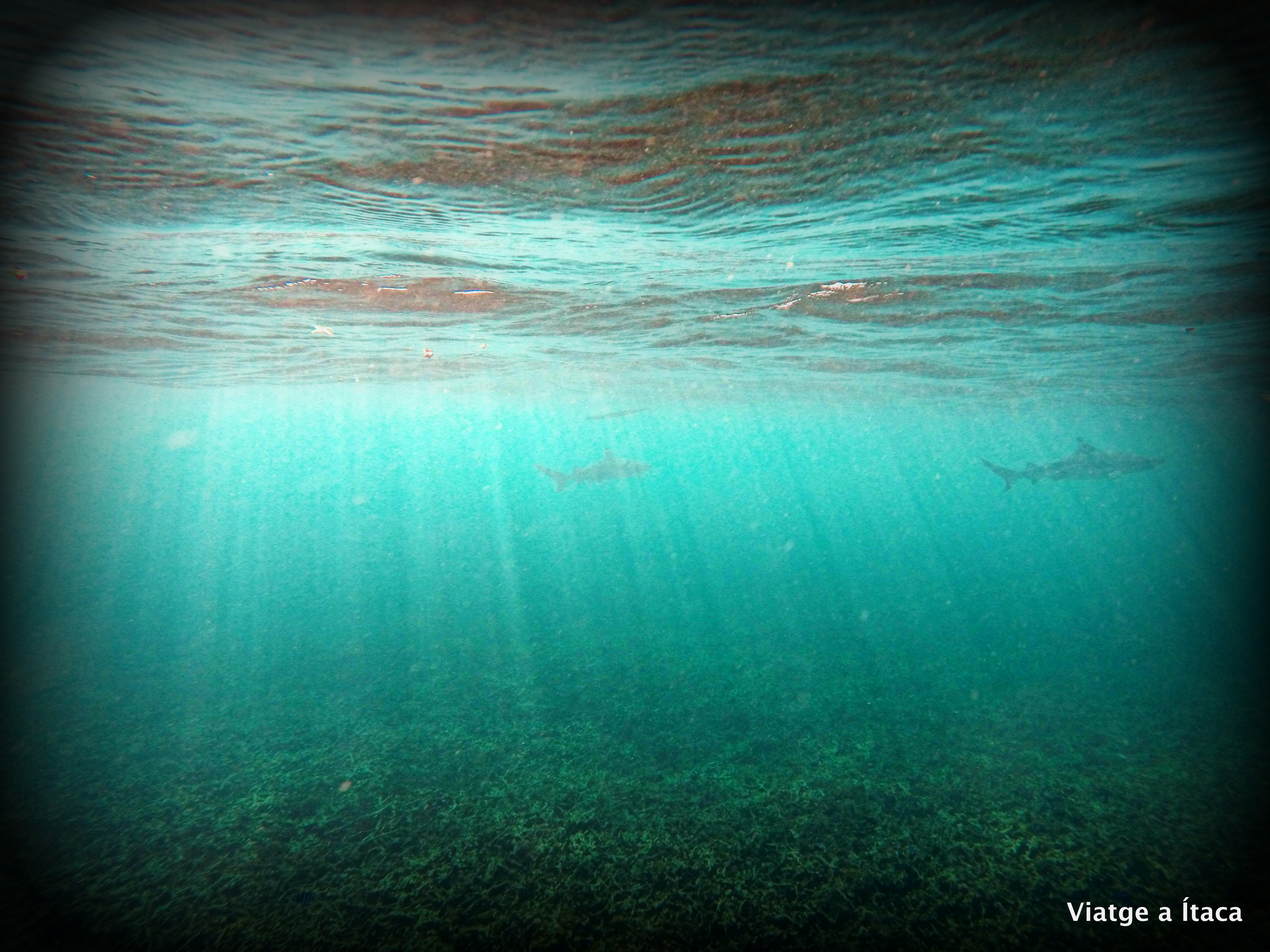 Primer només hem vist peixets i jo anava pensant… segur que no en veiem i de cop…. aixxx un tauró no molt lluny!!! Tot i que ens han dit que són totalment inofensius, i que només son carronyers, la primera sensació ha sigut de voler sortir corrents!!! Però després ja hem començat a observar-lo més i no sé dir-vos quants n’hem vist però uns quants.