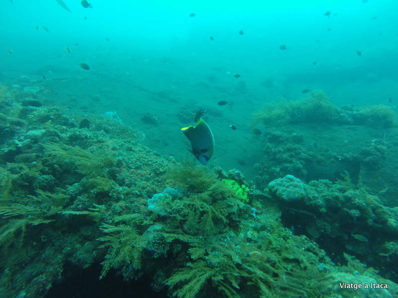 Ja s’acaba l’aire, i amb ell la primera immersió. Ara toca sortir, dinar alguna cosa a la platja, mentre fem temps per a una segona capbussada.