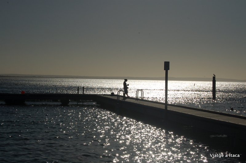 Cap a la furgoneta i directes al següent destí: Busselton on hi ha un dels “emabarcaderos” més llargs de fusta, però s’ha de pagar per passejar-hi, així que ens acontentem fent-li fotos des de la platja i preguntem a l’oficina de turisme on podem acampar, i sembla que per aquí tampoc està permès el free càmping.