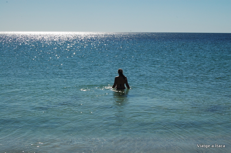 Una platja llarga, de sorra blanca i amb aigües tranquil·les i turqueses que em diuen a l’oïda… Que no et vols banyar???? I com no he de voler… Així que… a posar-se el bikini i directa al aigua, una mica freda però un cop dins, s’hi està genial i a sobre és tan transparent… Que bé que hem fet de fer-li cas a la senyora!!!