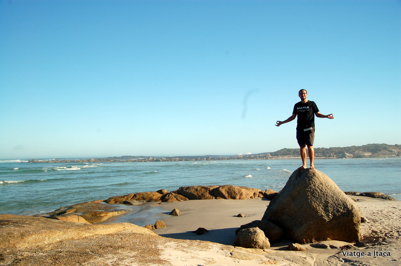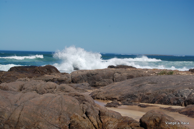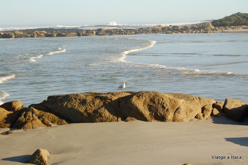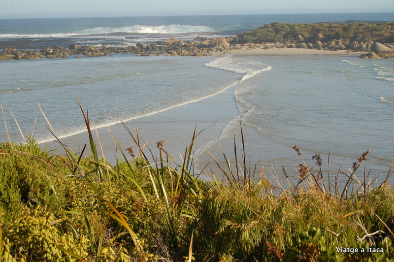 I així es com hem arribat aquí, en aquesta fantàstica platja on s’ajunten les aigües i darrera el mar peta enfurismat, i fa un gran espectacle.