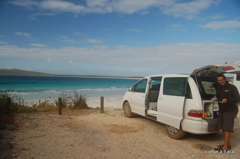 Hem dormit de luxe, i ens hem llevat tal com vam deixar-ho ahir, amb unes vistes increïbles del mar. Ens espera un llarg trajecte, així que ens prenem amb calma l’esmorzar gaudint de cada segon al peu d’aquest platja. Necessitem força, perquè avui volem arribar a Esperance, on segons diuen, hi ha les millors platges d’aquestes contrades, i està a uns quants quilometres d’on ens trobem ara mateix.
