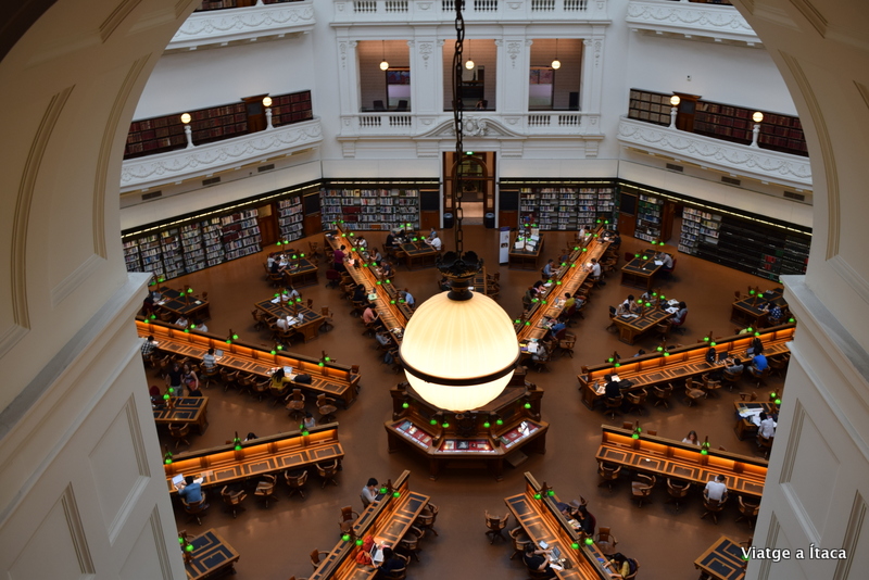 I nosaltres, tot i que fa un dia bastant lleig plovent a estones, anem a la biblioteca estatal de Victoria que segons ens han dit és molt maca. I efectivament, un cop dins podem veure una d’aquestes biblioteques amb solera, on et venen ganes de posar-te a estudiar o si més no a llegir, potser hi tornem en un parell de dies, si venim a veure amb l’Alberto el partit de la Champions….