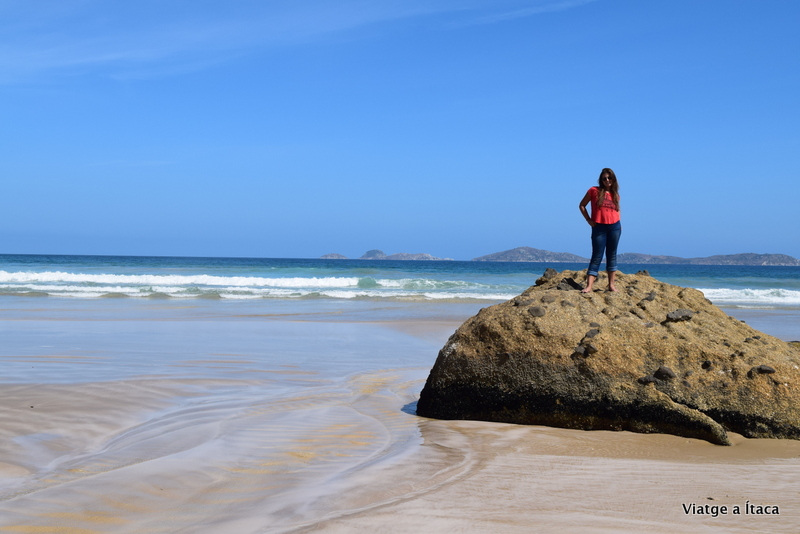 Les platges aquí són delicioses. No penses massa en el bany, potser perquè saps de l’aigua freda, o el vent que bufa no acaba de deixar que la calor faci el seu paper fins al punt que necessites refrescar-te. Aquí, i nosaltres que no tenim en ment cap taula de surf, de moment, ni neoprè per posar-nos, les visitem per passejar i per fotografiar, perquè en cada una, el contacte amb la natura dona matisos diferents, com per exemple a Squeazy Beach on incorporem roques i rierol.
