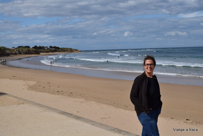 Un dels motius principals pels que és conegut Torquay, és per ser un lloc on es fa surf des de fa molt de temps, i a on han començat totes les cases de roba d’aquest esport, i a més evidentment, és un lloc on es pot començar a fer-ne. Així que primer de tot, hem anat a la seva platja i hem pogut començar a veure surfers o millor, aprenents de surfers intentant agafar l’onada.