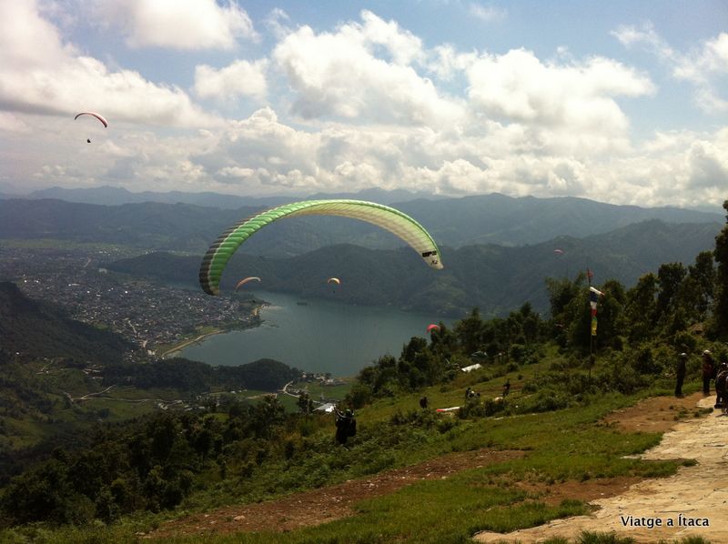 Hace cuatro años ya estuve aquí en Nepal, y, haciendo una de las excursiones de Pokhara fuimos al mirador de Sarangkot, un lugar donde se pueden ver en un día sin nubes los Annapurnas (ya os digo que no fue así). Estando allí, el guía nos dijo, que justamente allí, era donde despegaban los que hacían parapente. En ese momento, me entraron unas ganas locas de hacerlo, primero porque siempre me ha gustado todo lo relacionado con volar y ya hacía tiempo que tenía en mente hacerlo y segundo porque con las vistas que estábamos disfrutando sería realmente excepcional poder hacer parapente aquí. Pero en ese momento, por a o por b, no me decidí a hacerlo.