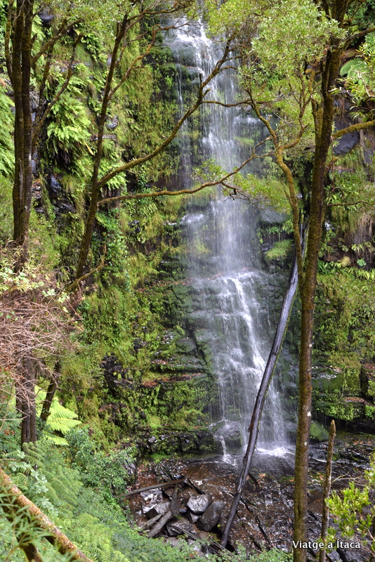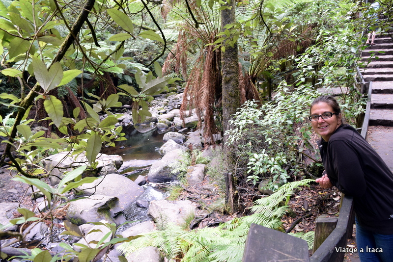 Seguint la famosa carretera i arribant a Lorne, pots trobar diversos salts d’aigua. Nosaltres escollim un, el que ens han recomanat, de nom Eskine Falls, on baixant unes escales per un camí enfonsat entre una vegetació densa i humida, vas a parar a un petit i bufó salt d’aigua. No és espectacular, però val la pena apropar-se a fer un passeig fins a la base.