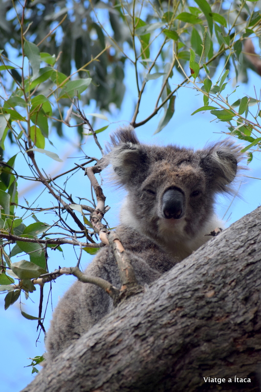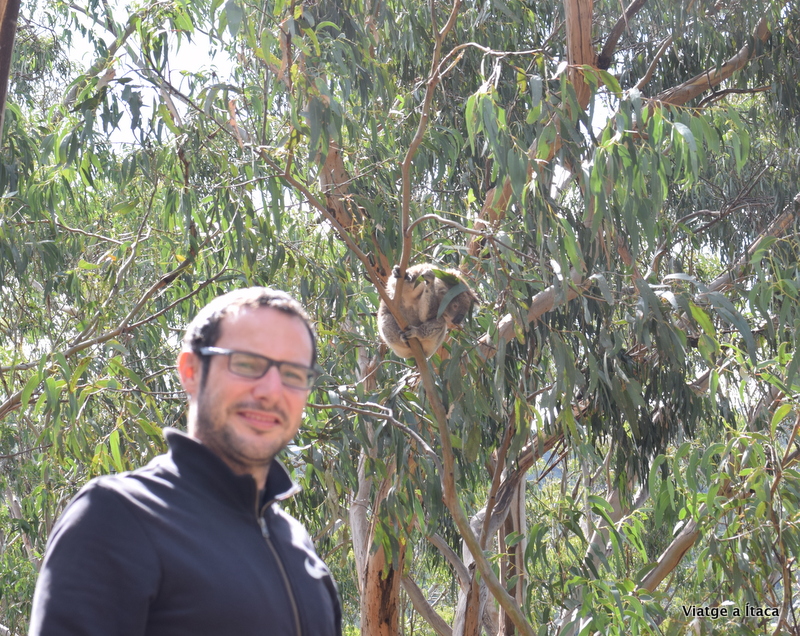 Creiem que és aquí, que no anem errats, però havíem llegit que n’hi havia molts, i no acabem de trobar-ne cap. Potser estem equivocats… Però de sobte… Para!!!! Un crit que desperta el bosc, però allà sense immutar-se, i entre les branques d’un eucaliptus, una figura immòbil que ens dona l’esquena. El primer koala en llibertat que veiem, i cincs passes més… i un altre!!!!