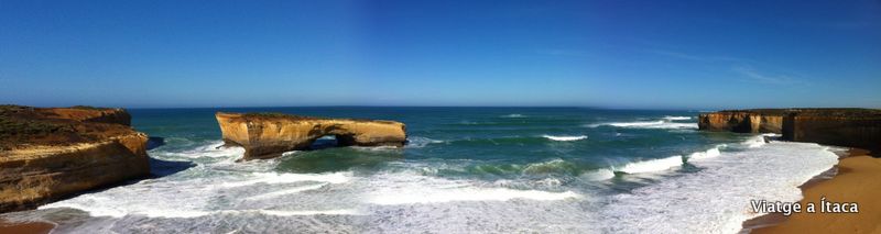Que bé, el sentir una bona dutxa de bon matí, tot just abans d’esmorzar. Ho haurem de repetir, però de moment caldrà retenir el moment, que la propera mai se sap quan tocarà. Avui hem d’agafar forces, que acabarem la Great Ocean Road, i per fer-ho anirem resseguint els llocs que hem llegit i on ens vingui de gust aturar-nos. El primer, i molt a prop d’on hem fet nit, hi ha una zona anomenada “the Arch”, el nom està força aconseguit, si no, només cal que mireu la foto…