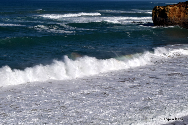 Temps rere temps que deia aquell, i l’erosió fent feina, dia rere dia sense parar per descansar. El “London Bridge” és un bon lloc on parar nosaltres, i seguir comprovant com a la natura, i concretament a l’oceà, li agrada això de fer arcs i ponts. I quan pares un segon a contemplar-ho, i tens la sort de veure l’arc de Sant Martí apareix al rebotar de les onades contra la roca, saps que t’agrada això, que un dijous al matí ho estiguis gaudint, i que no et sembli festa, te n’adones que portes molta felicitat acumulada de dies i dies.