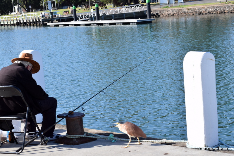 Uns simpàtics veïns, ens indiquen la presència d’un parell de foques, que des de l’aigua acompanyen la pesca d’un home, que ajagut a l’altre banda del canal va fent via. No sabem si reparteix el que pesca, però elles són allà per veure que cau.