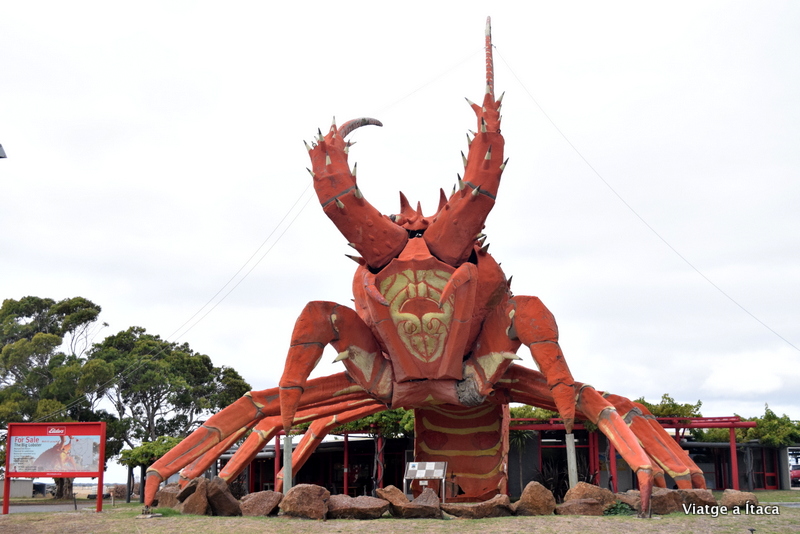 Uns quilometres més enllà, es troba Kingston, punt d’entrada al parc nacional de Coorong, conegut per ser una de les zones de cria de pelicans més grans del món. La carretera paral·lela al mar, et condueix per unes marismes que formen el parc nacional. A la oficina d’informació, ens comenten que no ens hi podem quedar a dormir al parc perquè estan fent tasques de esterilització, i ens donen l’alternativa d’una zona d’acampada gratuïta, ja sortint del parc. Perfecte! No podíem marxar del poble, sense aturar-nos a la gran llagosta, nosaltres pensàvem que era una escultura, i sembla que a més d’això, és un restaurant, ara en traspàs. Quin era el plat estrella, i si algú el compra i canvia el menú, que farà amb la figura?