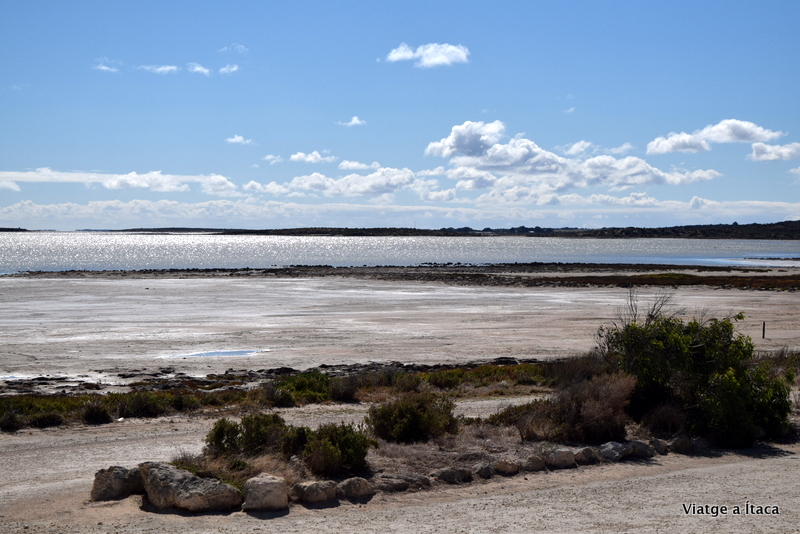La carretera que fem a continuació és preciosa. El mar ha format unes llacunes salades. Les aigües tranquil·les, són aprofitades pels pelicans per fer la seva residència.
