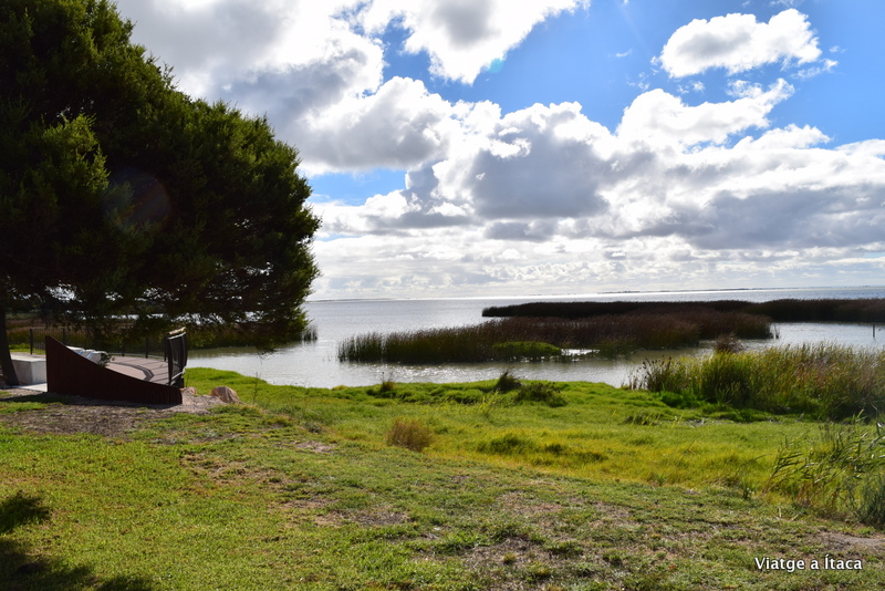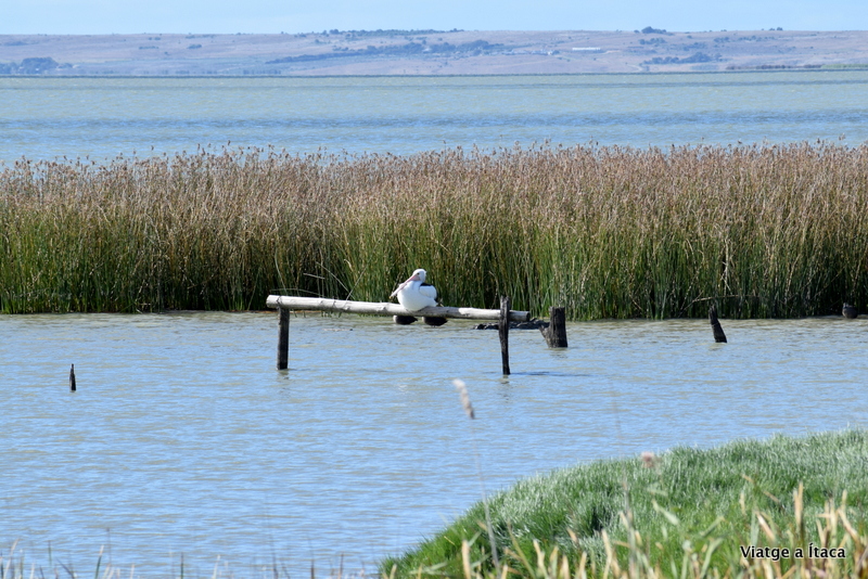 A meitat del parc, una zona d’observació on s’hi arriba caminant després d’haver aparcat el cotxe. Els veus des de molt lluny, potser algun de més aprop que vola cap a la petita illa on està la resta. Llegim la informació que trobes en el punt, i aprenem que el tipus de pelicà que hi ha per aquí, és el més gran del món. Un metre i mig poden arribar a fer, i pel que sembla tenen el bec més gran de totes les aus. Quantes coses podem aprendre en una estoneta… ☺