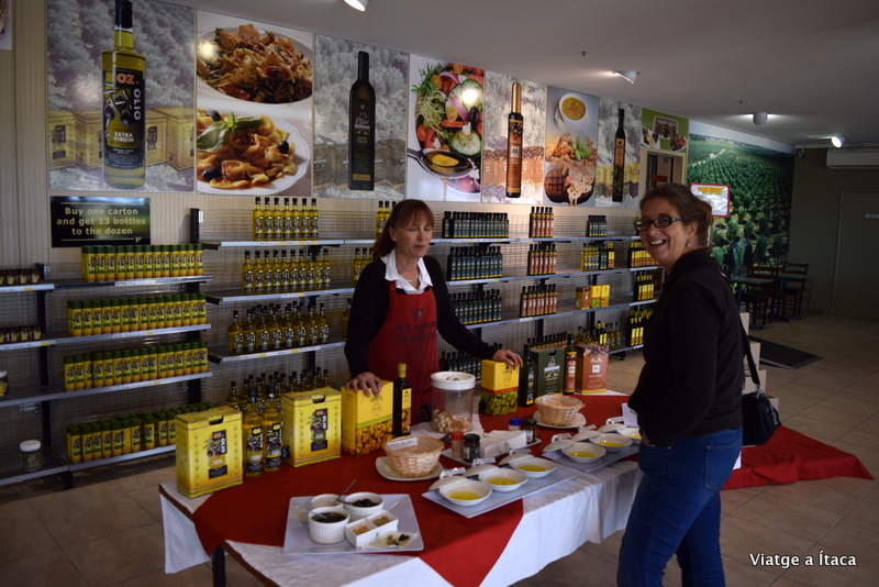 Tastem olis i olives, a més d’algun altre producte, i ens enduem una ampolla pel viatge, a més d’uns quants bons consells per la nostre ruta cap al nord.