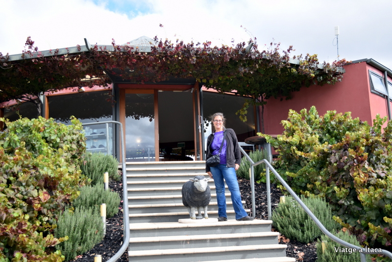 Detalls, tots pensats. Zona d’aparcament per a ciclistes, amb font perquè reomplin d’aigua, i zona de jocs per a nens. A dins, un “cellar-door”, com diuen per aquí, que ve a ser la botiga del celler, on trobes una sala amb aires de pub anglès, guardonada com la millor de l’any, i uns vins que només tastar-los ja ens convencen. El tast, gratuït com ha de ser. ☺