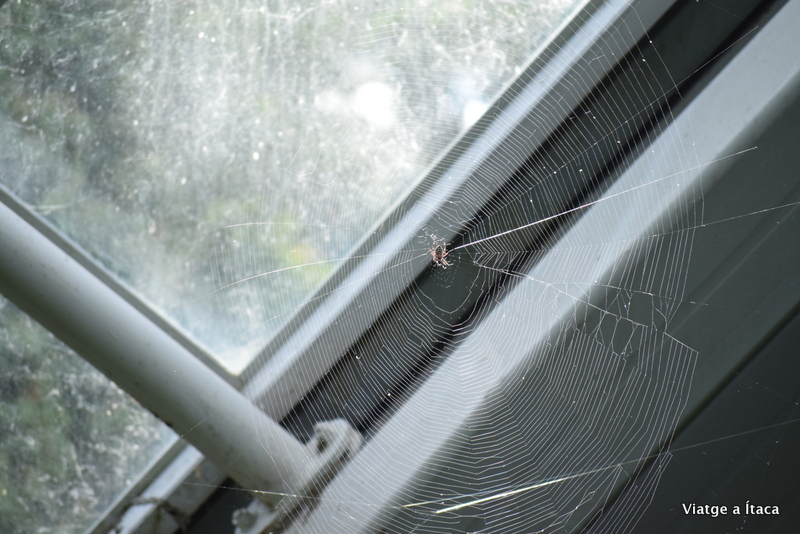I al fons un hivernacle. Hauria de ser tancat, però és obert, o això sembla. Entrem i caminem per la passarel·la de fusta. Un ocell solitari, de colors vius que ens saluda des del mig. No s’espanta fins que som molt a prop, i des d’allà fuig a un arbre a seguir cantant. Aranyes, i vegetació per a les condicions reproduïdes d’un clima més tropical.
