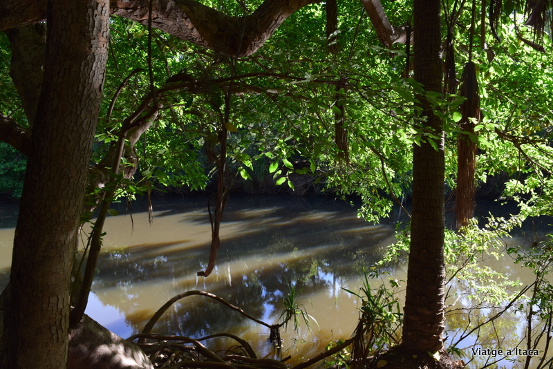 Obrim els ulls de bat a bat quan arribem al davant de la “termal pool”, i és que sembla un lloc preciós on fer un bany. Venim preparats amb el banyador, però abans arribem al final del camí, on toca el riu. Allà no t’hi pots banyar, sembla que entre d’altre coses, perquè algun cocodril ronda per allà.