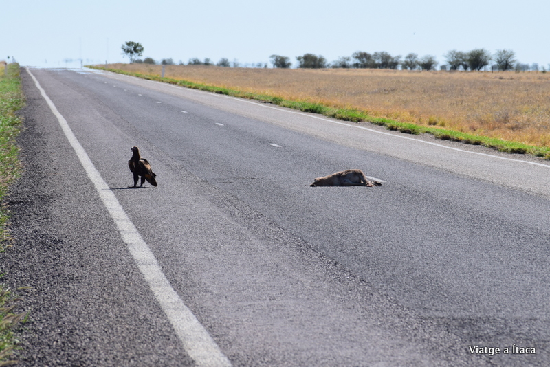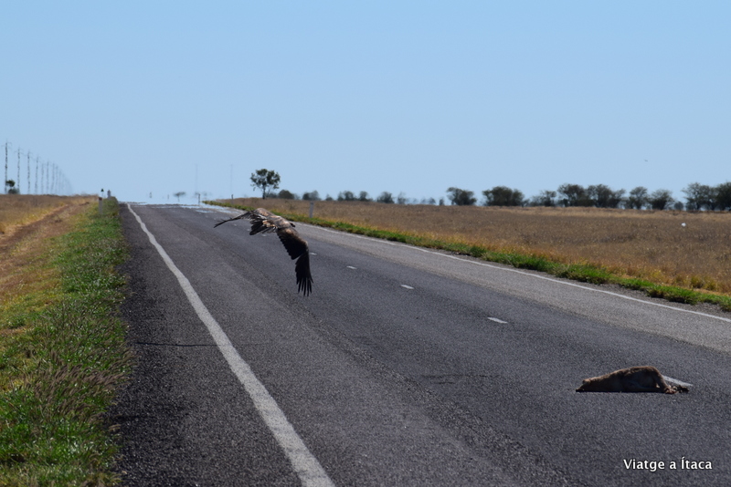 Entre el camps de color or que anem trobant, diversa fauna que ens fa aturar. Emus que corren pels camps no sabem si en estat salvatge o captius en cercats enormes, i també alguna àliga més per la col·lecció, que entre vehicle i vehicle que passa, intenta menjar les restes d’algun animal que reposen a la carretera.