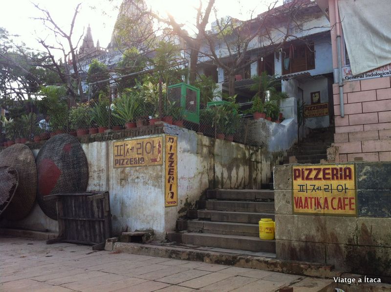 Desde nuestra Guest House hemos ido andando hasta el Assi Ghat ya que aún estar un poco más arriba en el río, estamos relativamente cerca, aunque… Esto de llegar a los ghats no es muy fácil y hemos acabando dando un poco de vuelta. Ahora, sólo llegar ya hemos podido encontrar la pizzería ya que está justo en el mismo ghat.