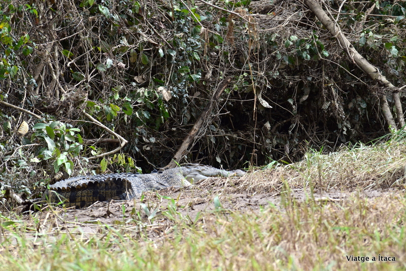 Mentre condueix, el nostre entranyable capità va explicant anècdotes, i aturant-se allà on creu podem anar contemplant la fauna de la zona. Un parell de cocodrils ens esperen descansant a tocar de l’aigua.