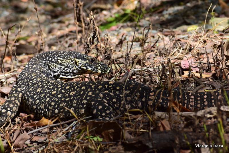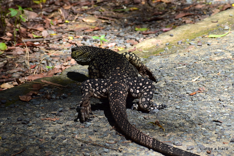 De tornada al cotxe, i mentre xerrem alegrement, una figura que es mou per terra quasi a tocar-nos. No ens havíem adonat, i l’ensurt és gran, però un cop controlat, traiem la càmera per fotografiar el rèptil de considerables proporcions que ens ha sortit a saludar.