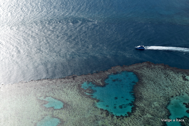 El blau s’estén a l’infinit, i cap a l’horitzó es comença a intuir un joc de tonalitats, on el turquesa extremadament clar ens fa expressar una exclamació d’admiració. La imatge, com l’havia imaginat durant tant i tant de temps. Si cerques al google “ gran barrera de corall” apareixen. Ara les tinc davant, les d’internet no són retocades, no senyor…