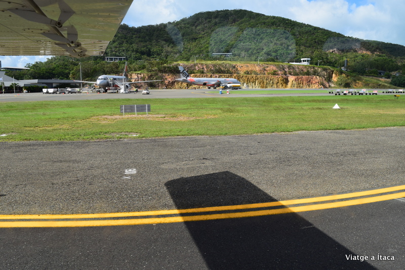 Aterratge a l’altre illa, en un apartat per a avionetes petites, just al costat d’algun avió de línia més gran. La espera és curta, i ja tornem a estar un altre cop a l’aire amb l’aparell al complet, i sense cap entrebanc.