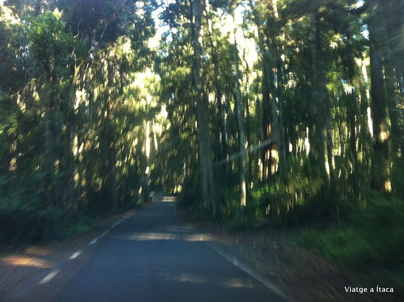 Des de Canungra, anem cap a OReilly’s Rainforest, on durant uns quaranta quilometres per una carretera en obres i amb moltes corbes, pots anar gaudint d’uns paisatges espectaculars. Passem per una granja d’alpaques, i més endavant un parell de trossos on els arbres pràcticament engoleixen l’asfalt, i ens deixen amb la boca oberta al circular entre aquesta densa teranyina de fulles i branques que no deixen passar quasi bé la llum del sol. Algun wallabie que creua la carretera ràpidament, i s’allunya fent bots.