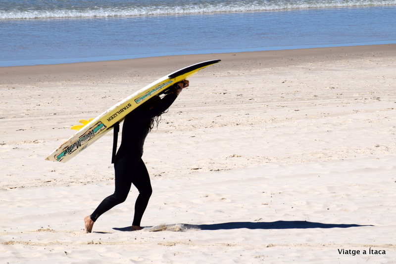Un pont per entrar al centre, i aparquem el cotxe al passeig del costat de la platja. La oficina de informació turística no queda molt lluny, però abans recorrem la zona preparada per passejar que hi ha a tocar de la sorra. Avui és diumenge, i com el dia acompanya, hi ha força gent. No està massificat, però hi ha una vida que s’agraeix, i pots escollir entre mirar qui passeja els seus gossos, qui jeu a la platja buscant uns rajos de sol, o qui aprofita per fer esport i lluir cos.