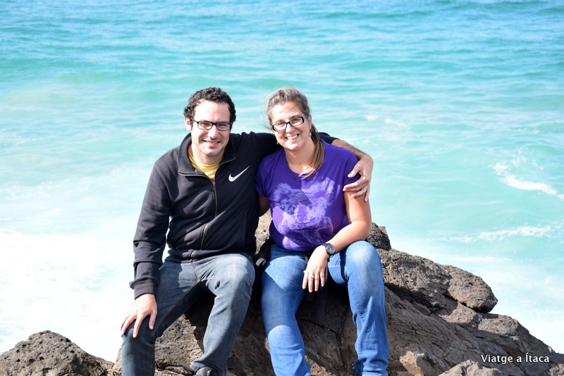 Un lloc fantàstic! I molt ben vestits d’acord amb el color predominat: el blau meravellós d’oceà i cel. Sobretot l’Eva sembla formar-ne part.