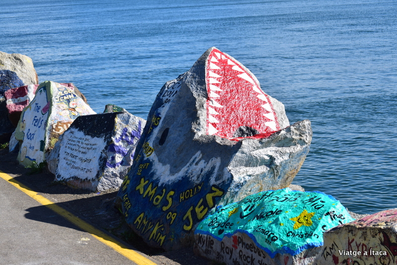 I d’allà, fer una caminada per la zona de la platja, per un passeig paral·lel a mar d’uns quants quilometres, on entre roques pintades amb gust amb tot tipus de motius, pots arribar a un punt des d’on, si tens sort, pots captar unes imatges increïbles d’alguns surfistes que aprofitin les onades per mostrar les seves habilitats.