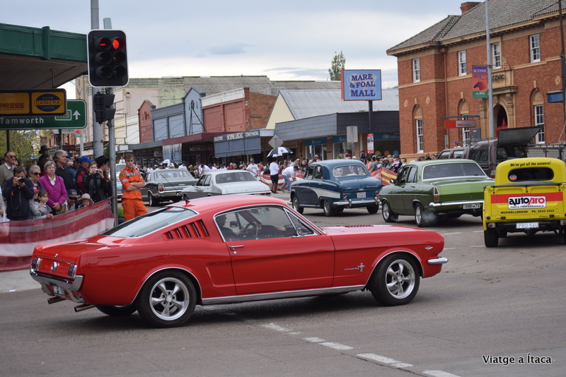 Una desfilada de cotxe d’època, imaginem que pels cavalls que hi tenen a dins del motor.