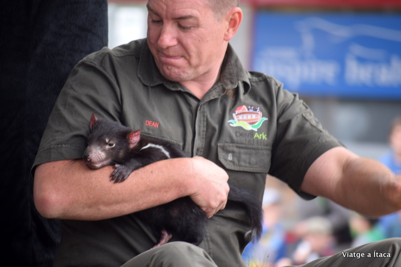 I entre algunes que no hem comentat, un que m’ha fet gràcia, i és que tot i que no sabem massa be el motiu, tenim la oportunitat de veure de prop un cadellet de dimoni de Tasmània.