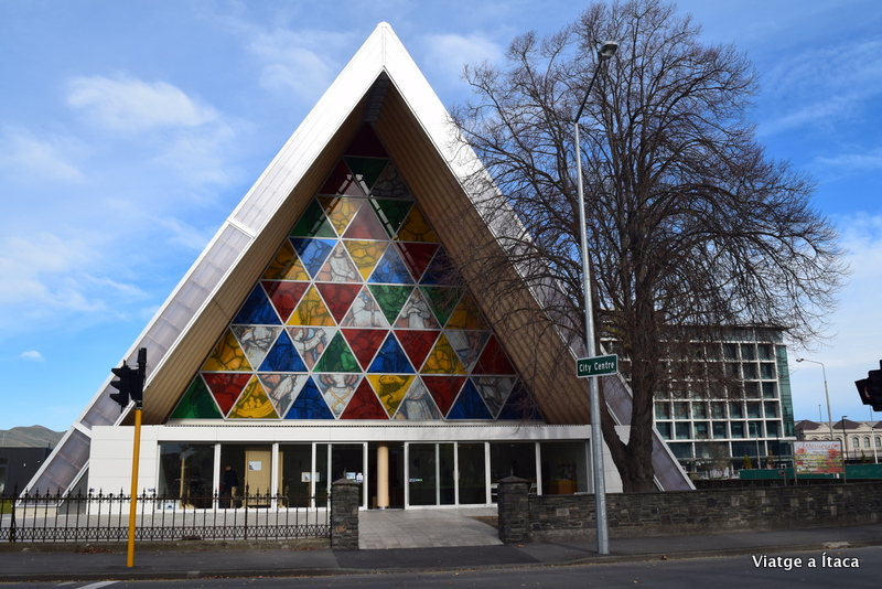 Prop, una església construïda fa poc, amb colors i formes que criden a la vida. El nom, Cardboard Cathedral.