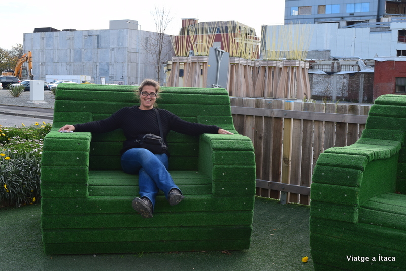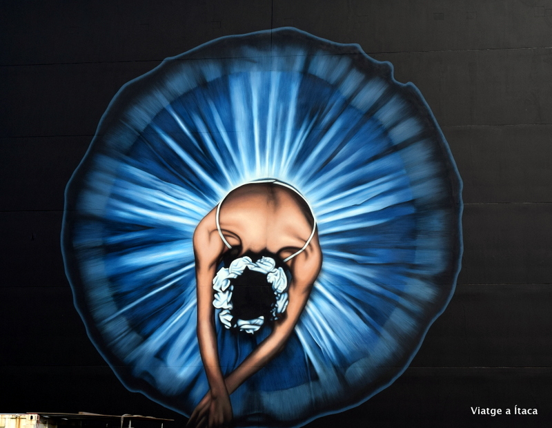 Murals i parets pintades amb un gust exquisit entre edificis derruïts, i al seu costat, l’església antiga amb una part important en ruïnes. Al costat, una avinguda amb sofàs on sentir-te petit, petit, petit…