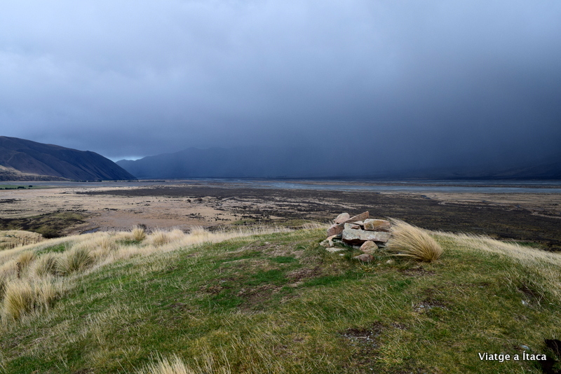 Un cop a la furgo una sopeta per escalfar-nos, i una mica de formatge per calmar la gana, que hem de seguir carretera i desfer el camí fet, primer fins a la carretera 72, i, un cop allà anar tirant en direcció el llac Tekapo (un nom curiós no?).
