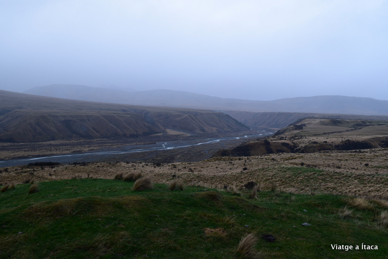 Però camí de Methven de cop hem vist un lloc que tenia bona pinta i hem aprofitat per parar, anar al lavabo i estirar les cames. Era a Rakaia Gorge, un indret al costat del riu Rakaia on hi ha unes molt bones vistes, la veritat és que els rius ara mateix van amb força caudal (o molt si els comparem amb els nostres) però pel que sembla a la primavera deuen ser impressionants si fem cas al llit del riu que s’hi intueix.