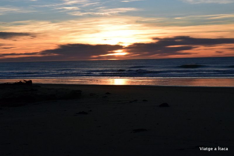 Ens despertem amb els primers rajos de llum (que al ser hivern ens deixa dormir bastant), i al sortir de la furgo… Ohhhh que maco!! La sortida del sol sobre el mar, i és que sembla que hem dormit just al costat de la platja!!