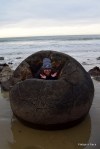 Doncs sí, ben estranyes aquestes pedrotes de Moeraki. L’amiga wiki ho explica com es van formar, al fons del mar, sediments calcaris etc, però no és fàcil d’entendre: http://en.wikipedia.org/wiki/Moeraki_Boulders