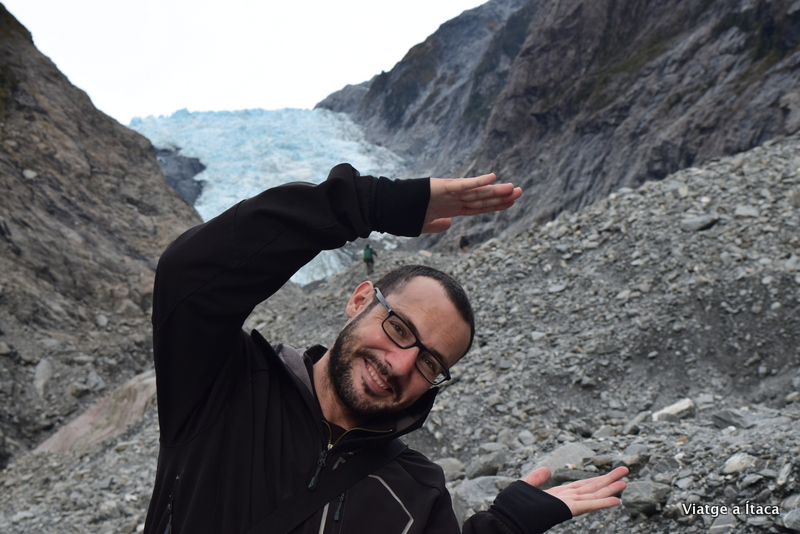 I després d’una última pujada, allà al tens, ben a prop. Una de les glaceres més accessibles del món, i ja el tenim aquí. Realment val la pena apropar-s’hi, un dels punt que no et pots perdre del país.