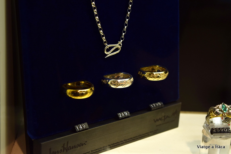 A dins podem veure l’anell, però és força car… I no n’hi ha cap de mentirijilla, senyor guapo i ben vestit?? Com m’agradaria tenir-lo!! Però amb el pressupost actual no ens ho permet!! El venedor, al que no entenem gaire, ens deixa veure un anell enorme que suposo van fer servir per la peli, i ens hi fem una foto.