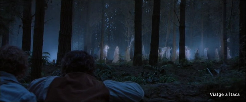 “-¿Y Rivendel y los elfos? ¿Está Rivendel a salvo? -Sí, por ahora, hasta que todo lo demás sea conquistado. Los elfos pueden temer al Señor Oscuro y quizás huyan de él, pero nunca jamás lo escucharán o le servirán. Y aquí, en Rivendel, viven algunos de los principales enemigos de Mordor: los Sabios Elfos, Señores del Eldar, de más allá de los mares lejanos. Ellos no temen a los Espectros del Anillo, pues quienes han vivido en el Reino Bienaventurado viven a la vez en ambos mundos y tienen grandes poderes contra lo Visible y lo Invisible.”
