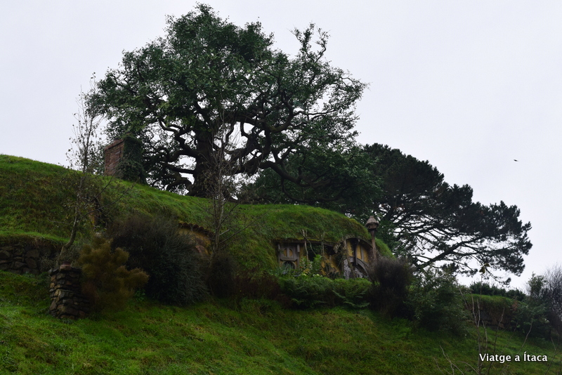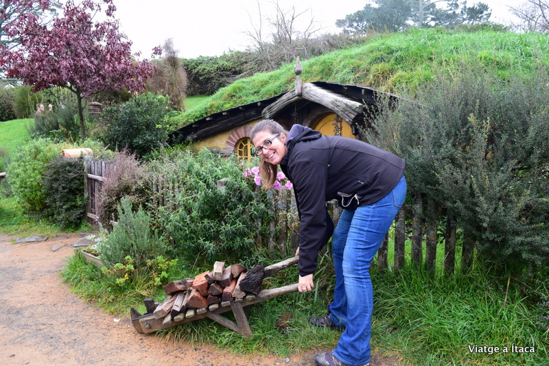 El circuit comença, i amb tranquil·litat la nostre simpàtica guia ens va explicant petits detalls del lloc i del rodatge. Sense mà fèrria, deixant la corda llarga perquè cadascú vagi al seu ritme passejant, entre tots els detalls fets a escala. Això si, fent que poc a poc anem avançant, que el proper grup ha d’arribar.L’entrada a Hobbiton es fa per on en Frodo llegint, espera l’arribada del mag Gandalf, ens comenta.