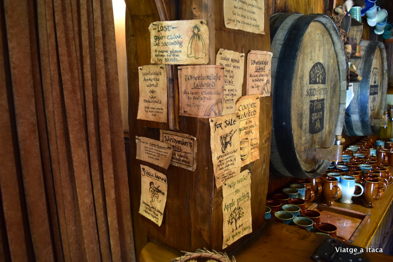 Tot i que no fa sol, l’emoció i aquesta passejada ens han assecat la gola. La taberna ens espera, i nosaltres acudim a la seva crida en llengua èlfica. Cervesa artesana, o Ginger Beer, una de les begudes preferides de l’Eva. Una estona per degustar-les entre els racons plens de petits detalls que fan les delícies dels bojos d’aquest món nascut de la imaginació de Tolkien, com som nosaltres.